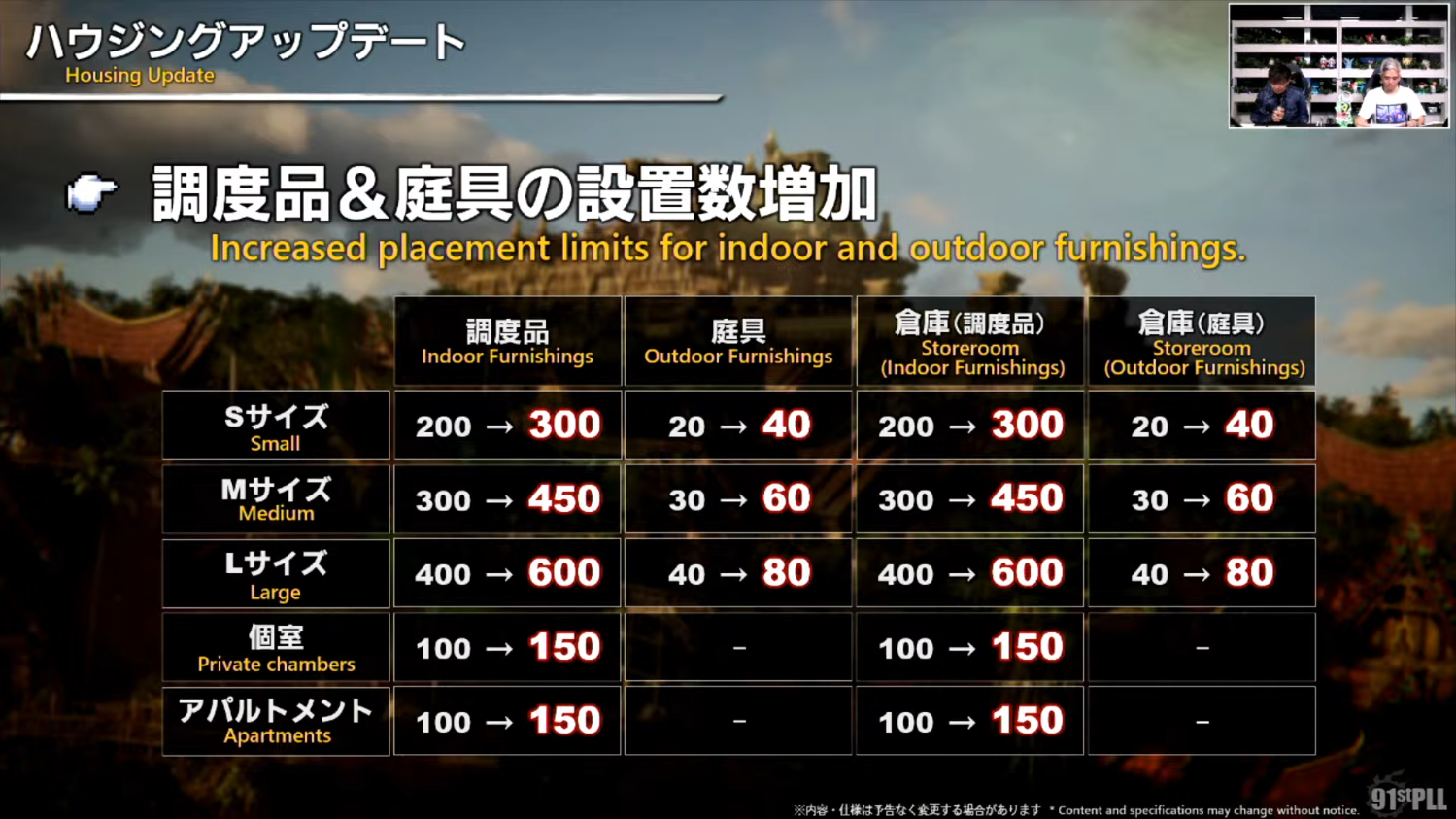 ・調度品&庭具の設置数増加